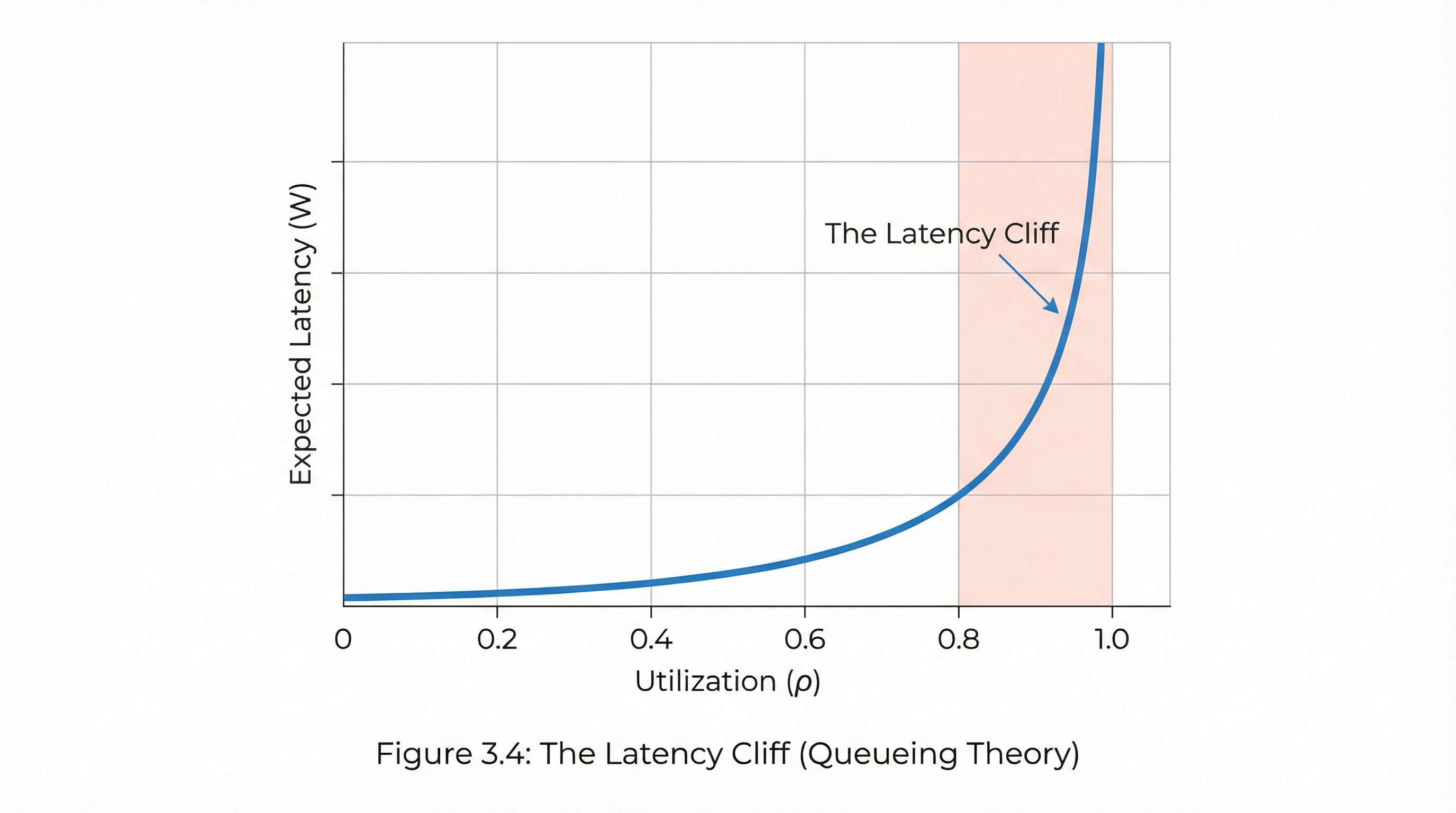 This equation shows the latency cliff: as \(\lambda \to \mu\), latency diverges.