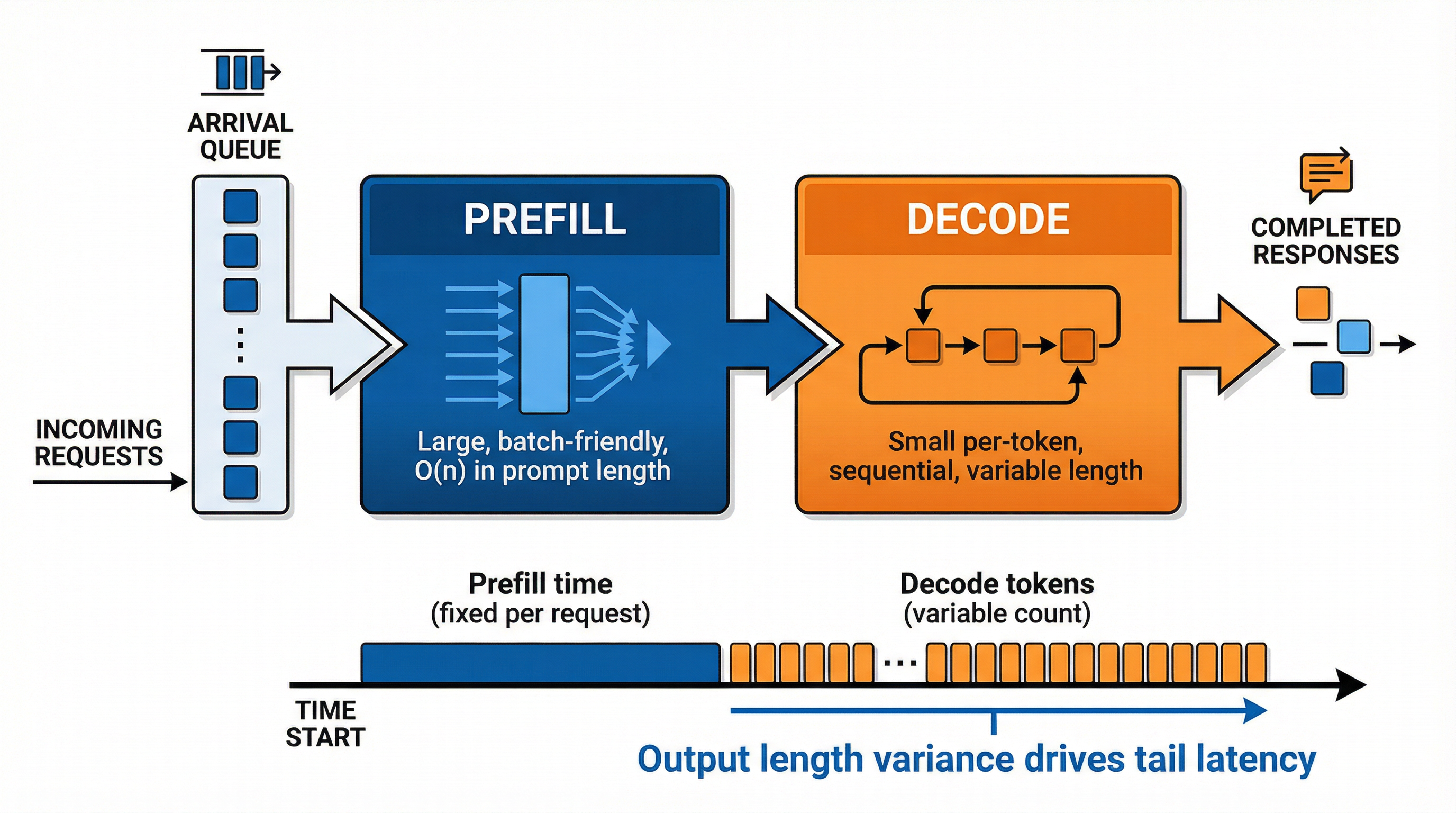 LLM serving is not a single service time. It is at least two phases: