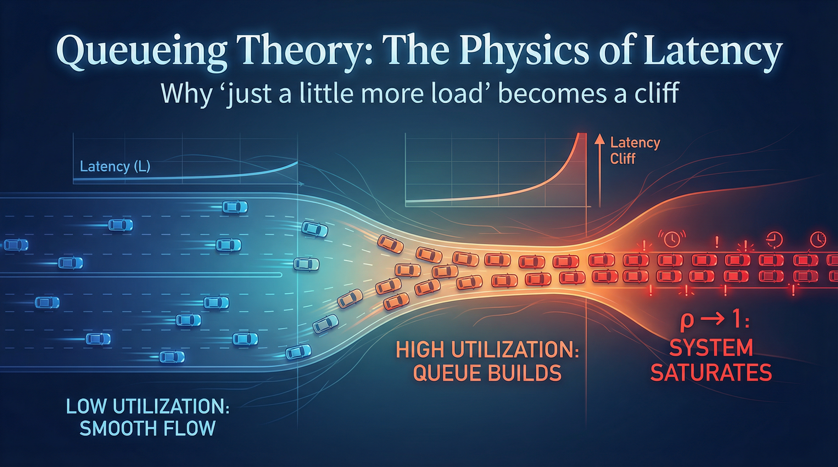 This is why systems that “look fine” at 60% utilization fall apart at 80%.
